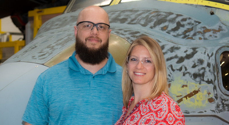 Love at first flight An operations manager and an analyst for the V-22 tiltrotor thrive on teamwork in the factory and at home. -